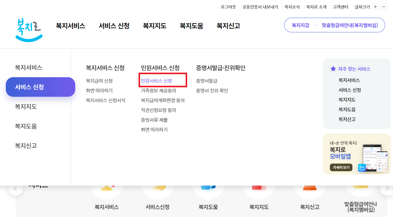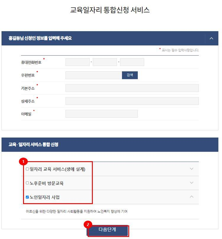 4) 노인일자리 사업 신청(민원서비스 신청)
