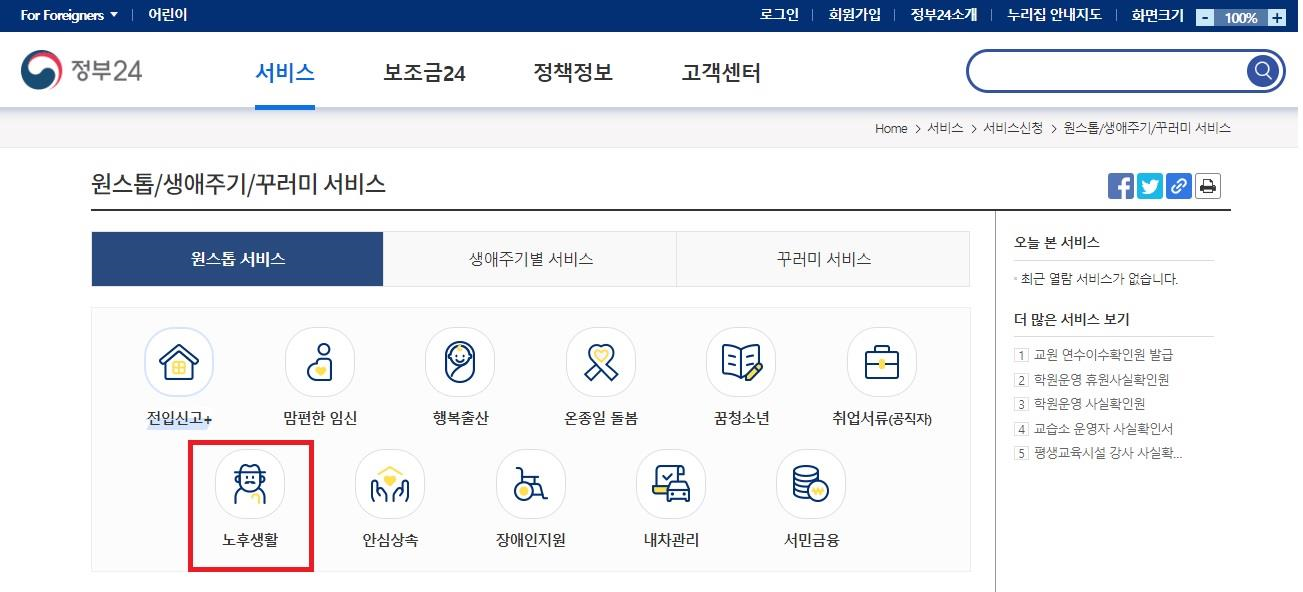 2) 원스톱/생애주기/꾸러미 서비스→노후생활